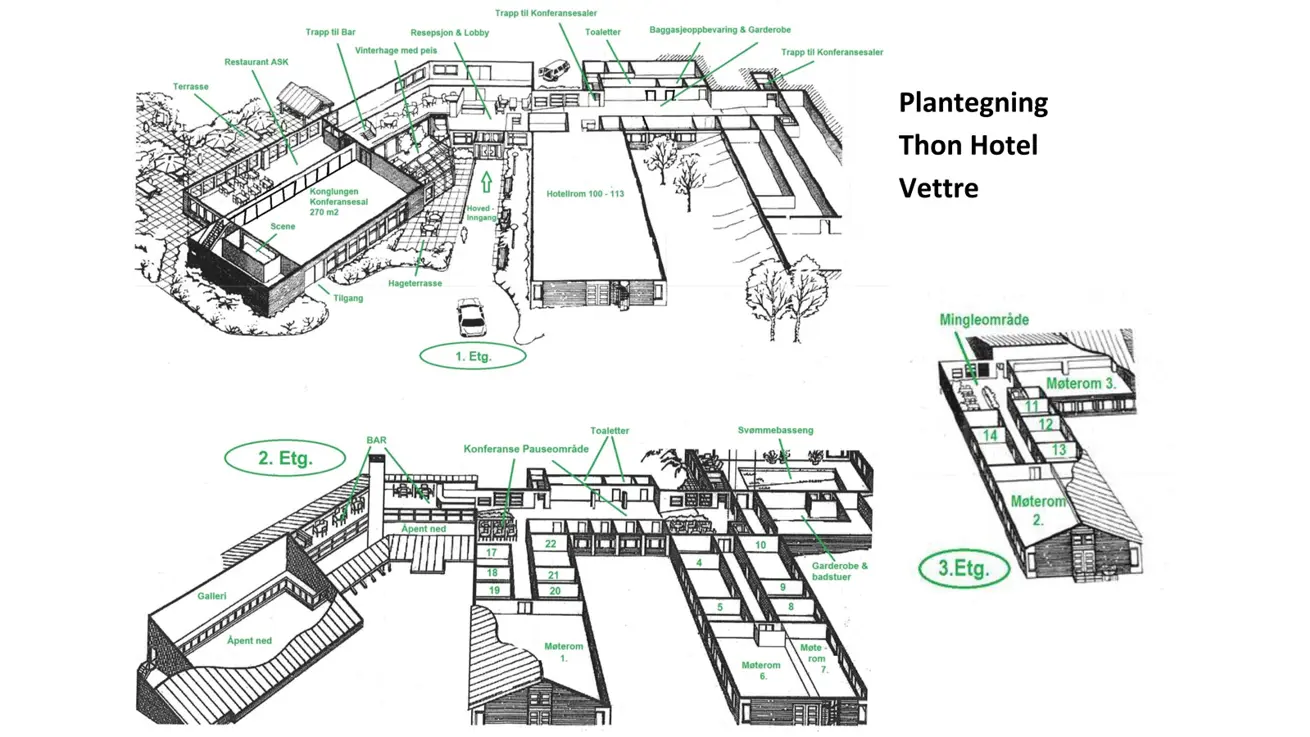 Thon Hotel Vettre est un hôtel de conférence disposant de 21 salles de conférence d’une capacité d’accueil de 600 personnes répartie sur toutes les salles. Chez nous, vous avez la garantie d’un bon encas à la pause et le restaurant Ask vous préparera des plats savoureux à base d’ingrédients norvégiens.